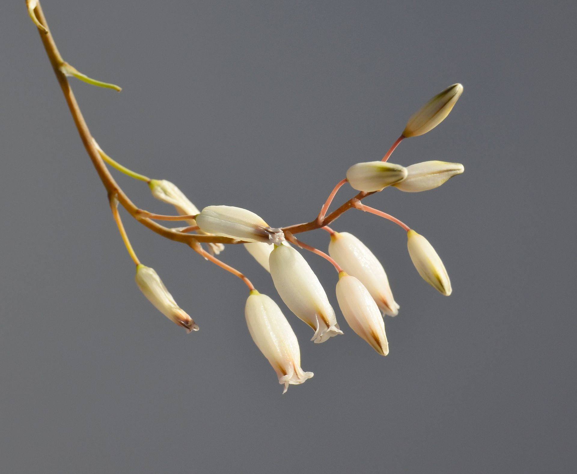 𝘈𝘴𝘵𝘳𝘰𝘭𝘰𝘣𝘢 𝘳𝘶𝘣𝘳𝘪𝘧𝘭𝘰𝘳𝘢 (𝘴𝘺𝘯. 𝘗𝘰𝘦𝘭𝘭𝘯𝘪𝘵𝘻𝘪𝘢 𝘳𝘶𝘣𝘳𝘪𝘧𝘭𝘰𝘳𝘢) É a única espécie do género Astroloba que tem flores avermelhadas. A inflorescência pode crescer até 50 cm de comprimento, as flores de forma tubular, estão posicionadas verticalmente, tendo evoluído conjuntamente com algumas espécies de aves (sunbird´s), que as polinizam. Habita a zona do Cabo Oriental, na África-do-Sul, uma região de chuvas invernais e temperaturas elevadas no verão. Tipicamente, cresce em zonas rochosas, de solos pobres em nutrientes e debaixo de arbustos que protegem as plantas do sol forte. Na ligação que se segue, há fotos incríveis desta espécie, a crescer na natureza: https://haworthia-gasteria.blogspot.com/2016/03/astroloba-rubriflora.html?fbclid=IwY2xjawIEzk1leHRuA2FlbQIxMAABHSj0dko3GaKGMO0MjQIuG_Bonr2m7fd9oSdK-2D6jhEpbVYedM2x20B9eg_aem_90IU2hakyejWUaLHE--mDg https://pza.sanbi.org/astroloba-rubriflora