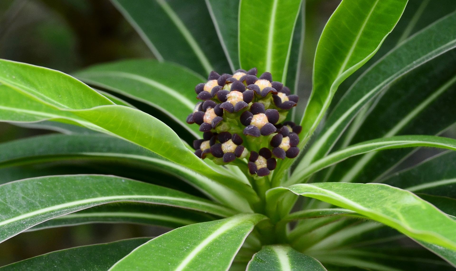 𝘌𝘶𝘱𝘩𝘰𝘳𝘣𝘪𝘢 𝘮𝘦𝘭𝘭𝘪𝘧𝘦𝘳𝘢 (alindres, figueira-do-inferno, alhendros, figueira-de-alhendros) Parque de Monserrate, Sintra | março 2024 Arbusto ou pequena árvore, podendo atingir 8 m de altura, endémica da Ilha da Madeira e Canárias. Floresce na primavera. As flores são têm um leve cheiro a mel. Pode utilizar-se em jardins em Portugal, apreciando alguma sombra e humidade, onde adquire um aspecto mais luxuriante, mas também em locais mais expostos e ensolarados. Suporta geadas, desde que não sejam muito fortes e prolongadas. Propaga-se facilmente por semente. Em alturas do ano mais secas, perde parte da folhagem, ficando os caules mais expostos e assemelhando-se a uma planta suculenta. Outras leituras: Flora-On Madeira https://madeira.flora-on.pt/?q=Euphorbia+mellifera Árvores e arbustos de Portugal https://www.arvoresearbustosdeportugal.com/.../alindres.../ Wikipedia https://pt.wikipedia.org/wiki/Euphorbia_mellifera