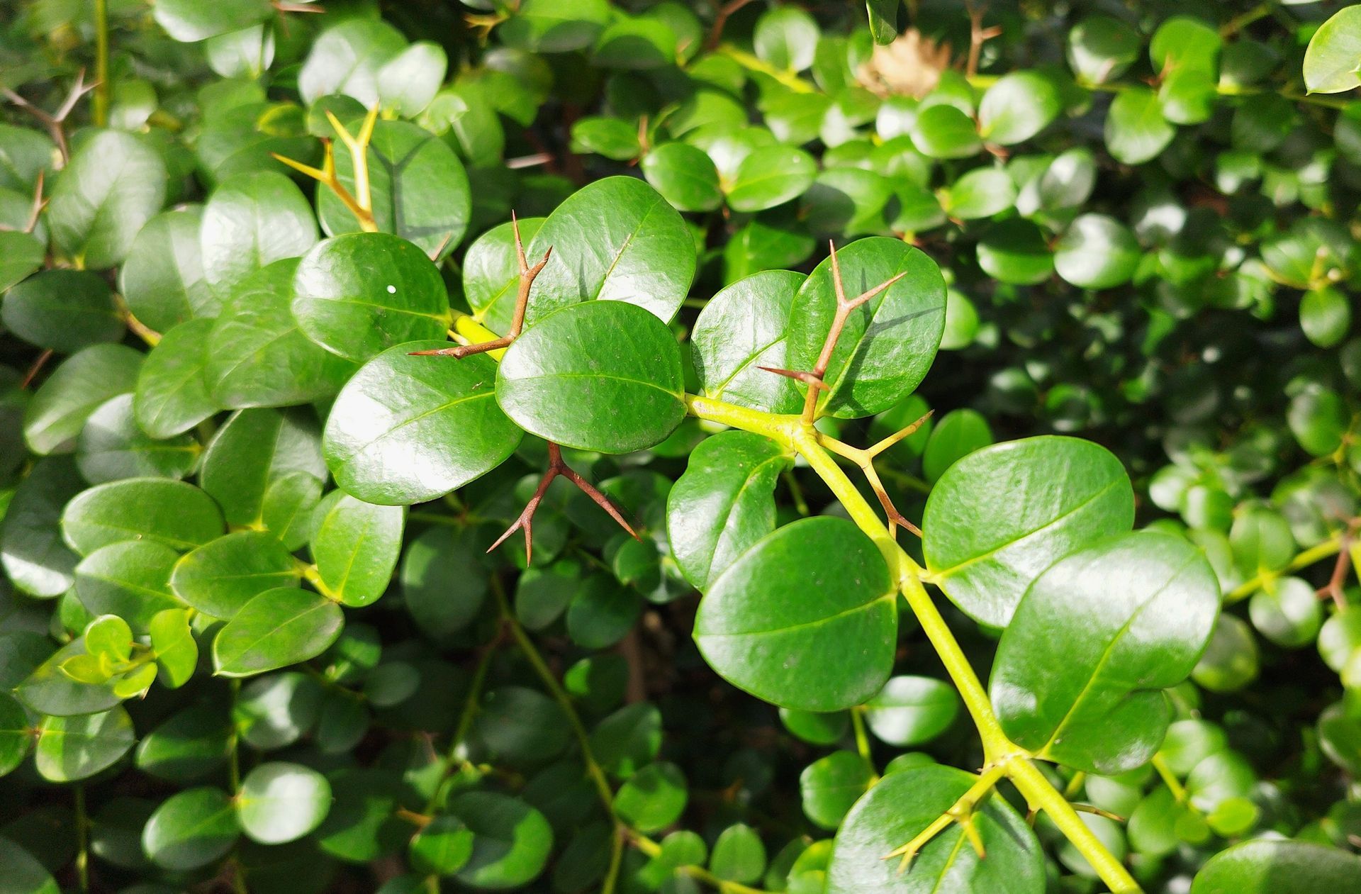 Arbusto lenhoso ou pequena árvore até 4 m de altura. Forma uma planta muito densa e espinhosa (espinhos em forma de “Y”), produz flores brancas muito atrativas, perfumadas e frutos de polpa avermelhada e suculenta.