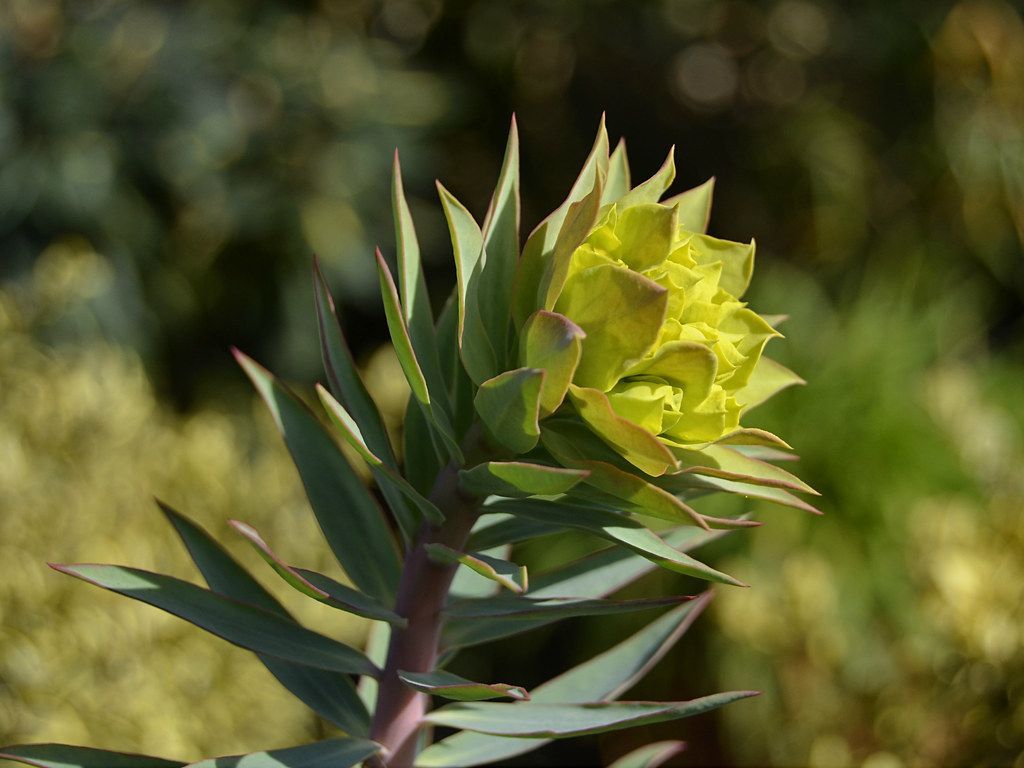 Espécie perene, nativa do sul da Europa e sudoeste asiático. Forma umas pequenas moitas de cerca de 50 cm de altura, por 60 a 90 cm de largura. Cada rebento tem as folhas verde-azuladas curiosamente disposta em espiral, o que torna esta planta muito vistosa. Nas minhas plantas, o início da floração começa a perceber-se logo em janeiro, pelo engrossamento da parte terminal dos rebentos. Gosta de locais ensolarados e muito bem drenados, para se desenvolver bem. Já tive algumas que apodreceram durante o inverno, porque ficaram abafadas pelas ervas em volta, gosta de estar sempre bem arejada. Tem boa resistência às geadas, temperaturas elevadas e secura no verão. Pela vistosa floração e aspeto arquitectural dos seus caules, é por isso, uma espécie muito recomendada para jardins em climas mediterrânicos.