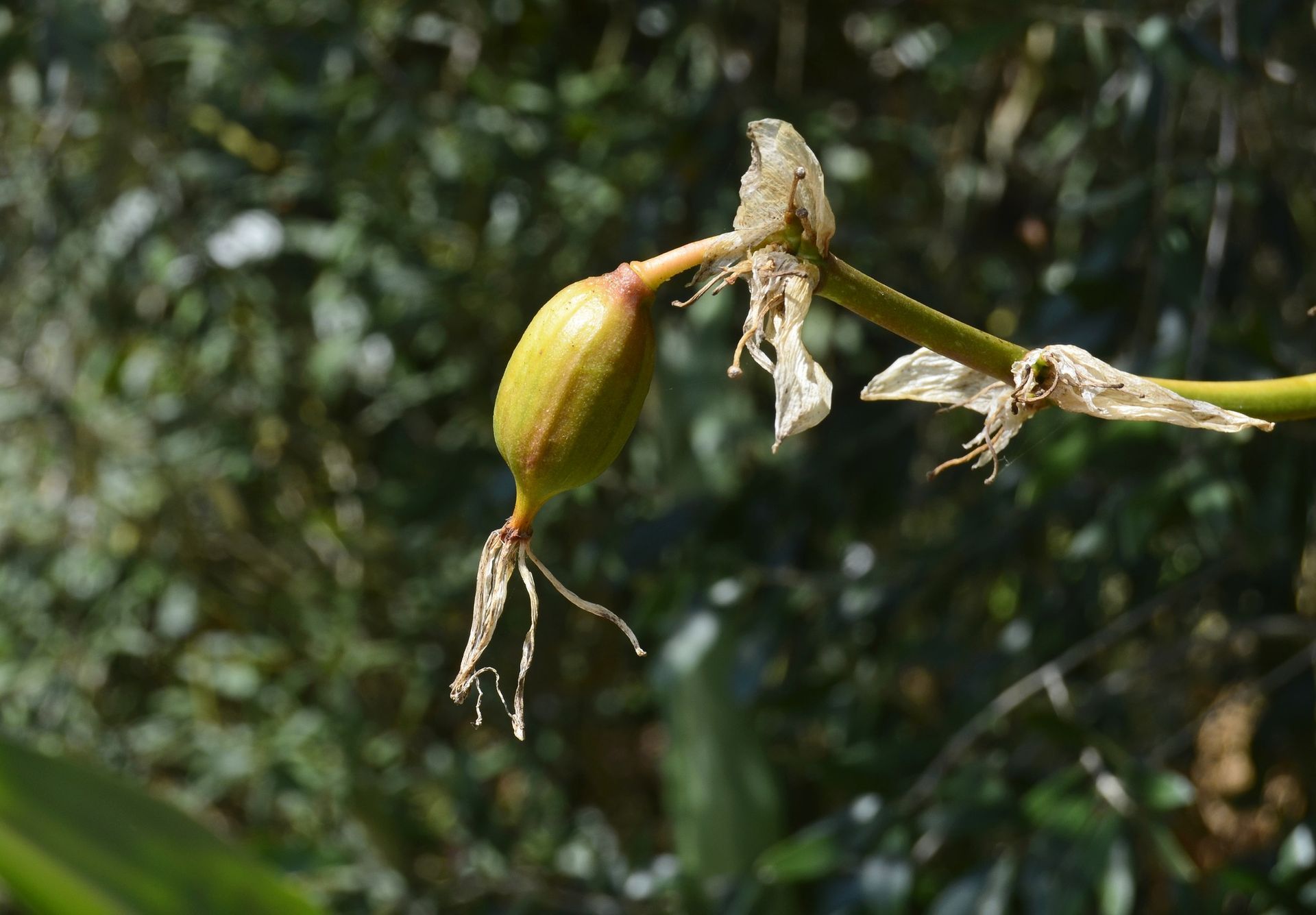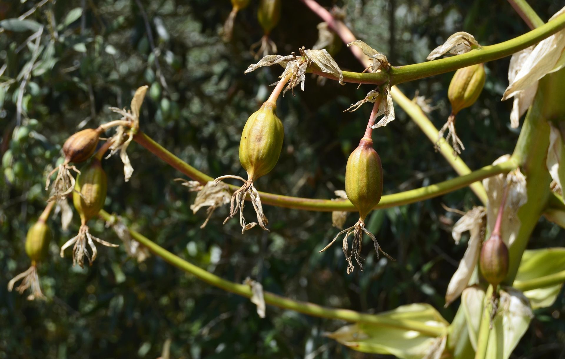 As fotos foram registadas em plantas que se encontram numa zona seca do terreno, no final de agosto. A floração ocorreu na primavera, observando-se agora as cápsulas onde se encontram alojadas as sementes. As brácteas da inflorescência, inicialmente muito coloridas, tornam-se esverdeadas após a floração.