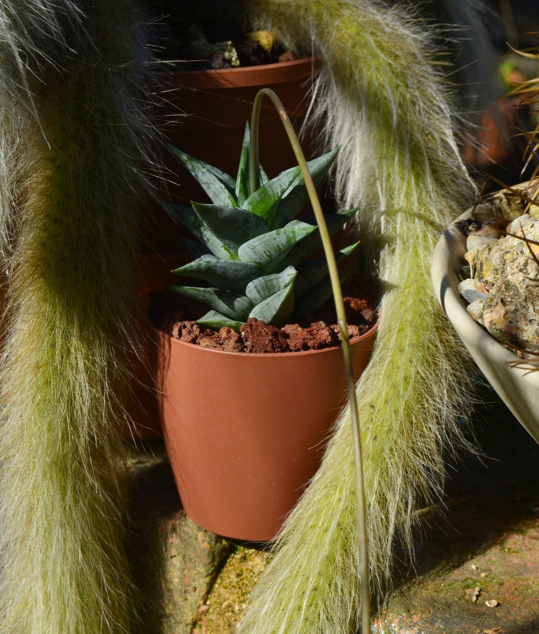 ๐˜ˆ๐˜ญ๐˜ฐ๐˜ฆ ๐˜ค๐˜ข๐˜ญ๐˜ค๐˜ข๐˜ช๐˜ณ๐˜ฐ๐˜ฑ๐˜ฉ๐˜ช๐˜ญ๐˜ข ( syn. ๐˜Ž๐˜ถ๐˜ช๐˜ญ๐˜ญ๐˜ข๐˜ถ๐˜ฎ๐˜ช๐˜ฏ๐˜ช๐˜ข ๐˜ค๐˜ข๐˜ญ๐˜ค๐˜ข๐˜ช๐˜ณ๐˜ฐ๐˜ฑ๐˜ฉ๐˜ช๐˜ญ๐˜ข) (Planta produzida em cultivo ๐˜ช๐˜ฏ ๐˜ท๐˜ช๐˜ต๐˜ณ๐˜ฐ, na Succulent Tissue Culture, NL; 2008; Ref: STC.010024, clone 2) Espécie restrita a uma pequena área a leste do Massif d’Itremo, província de Fianarantsoa, no centro de Madagáscar, a cerca de 1.300 – 1.400 m de altitude. Habita em afloramentos de mármore calcário, expostos e sazonalmente dessecados, em areia calcária fina e solo argiloso em fendas, entre cascalho de mármore, em conjunto com gramíneas e outras suculentas. Aloé compacto, forma pequenos tufos de vários rebentos que aparecem a partir da base. O caule é curto, mas alongado, densamente coberto por folhas e restos de folhas secas persistentes. As folhas verde-azulado escuras, de uns 5 - 8 cm de comprimento, apresentam um arranjo dístico (que se dispõem em duas filas opostas, de um e outro lado de um mesmo eixo). As folhas velhas permanecem na planta por muito tempo e podem atuar como meio de conservar a humidade perto das raízes. Estas possuem um canal ao longo da parte superior, mas na natureza, durante a estação seca, as margens das folhas dobram-se e os dentes marginais claros entrelaçam-se, lembrando quase, as mandíbulas de um crocodilo. Este arranjo invulgar das folhas em forma de leque, parece ideal para as plantas se adaptarem às fendas e fissuras das rochas onde crescem. A planta tem uma forma bastante estilizada e arquitetónica. No período de floração, geralmente em dezembro – janeiro, em Portugal, aparecem inflorescências não ramificadas, delgadas, de até 40 cm de comprimento, onde se inserem as pequenas flores brancas, uma cor pouco habitual no género ๐˜ˆ๐˜ญ๐˜ฐ๐˜ฆ. Quanto ao cultivo, e tendo em mente a característica calcária do substrato onde cresce, na natureza, recomenda-se um composto drenante e grosseiro, contendo se possível, lascas de calcário, cascalho e areia com um pouco de turfa ou substrato orgânico adicionado. Ainda como nota de tratamento, é de referir que cultivo esta espécie no exterior o ano inteiro, embora abrigado por telheiro, da chuva e do sol direto. Nos dias mais frios do inverno, encontra-se protegido por manta térmica (tela anti-geada) e a rega é reduzida ao mínimo, cerca de duas vezes por mês, mas mantendo ainda alguma humidade do solo, enquanto se encontra em floração. Por fim, o crescimento é bastante lento, não sendo das espécies mais fáceis de cultivar, em comparação com outras espécies de aloé de pequeno porte. Informação adaptada e que se encontra disponível para utilização mediante licença ( https://creativecommons.org/licenses/by/4.0/ ), em: «Aloe Calcairophila Aloaceae». Protected Areas, https://protectedareas.mg/document/show/164435 Fotos da espécie na natureza: https://www.biodiversity4all.org/.../363196.../browse_photos A planta das fotos que se seguem, foi produzida em cultivo ๐˜ช๐˜ฏ ๐˜ท๐˜ช๐˜ต๐˜ณ๐˜ฐ, na Succulent Tissue Culture , NL; 2008; Ref: STC.010024, clone 2